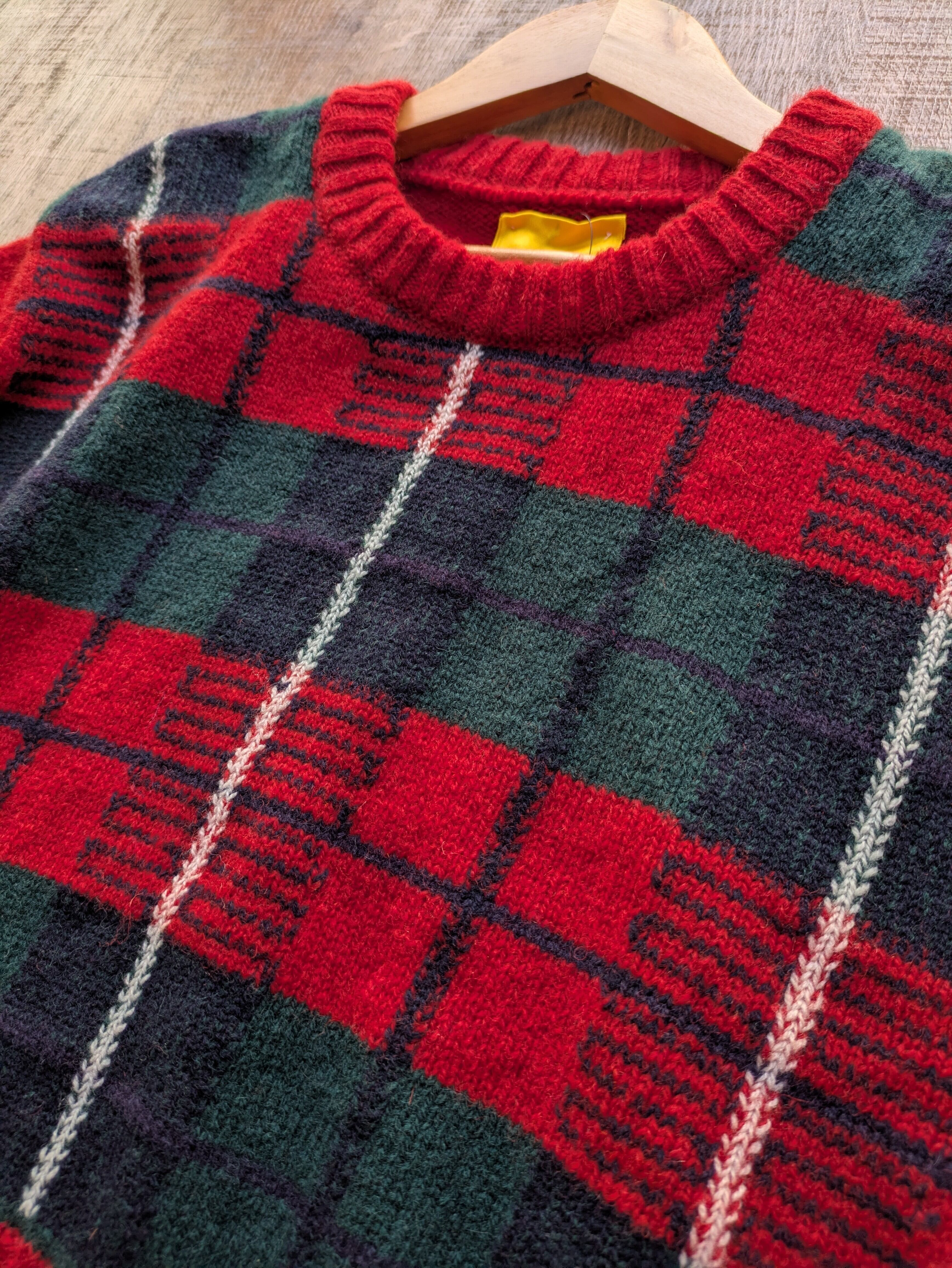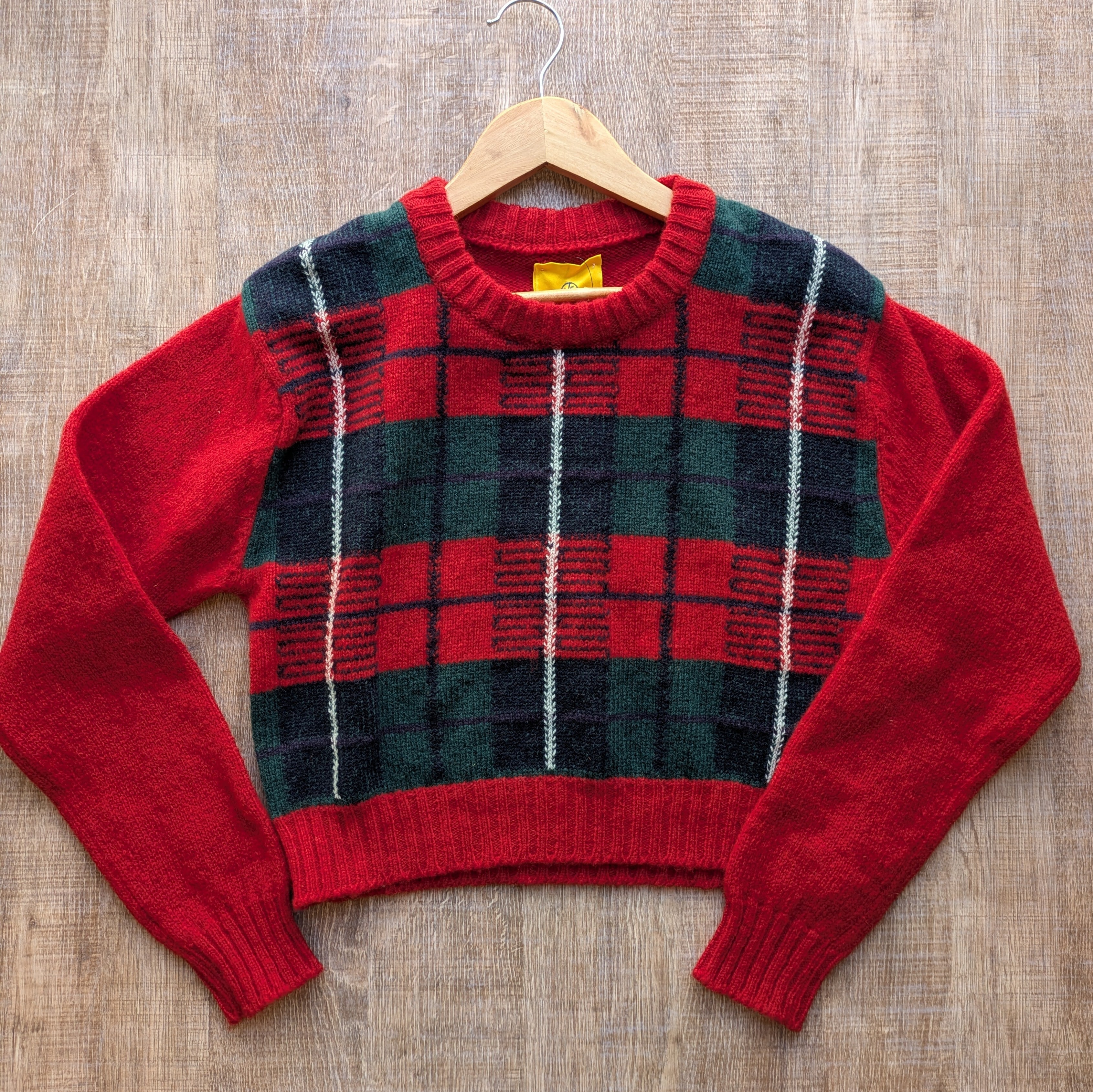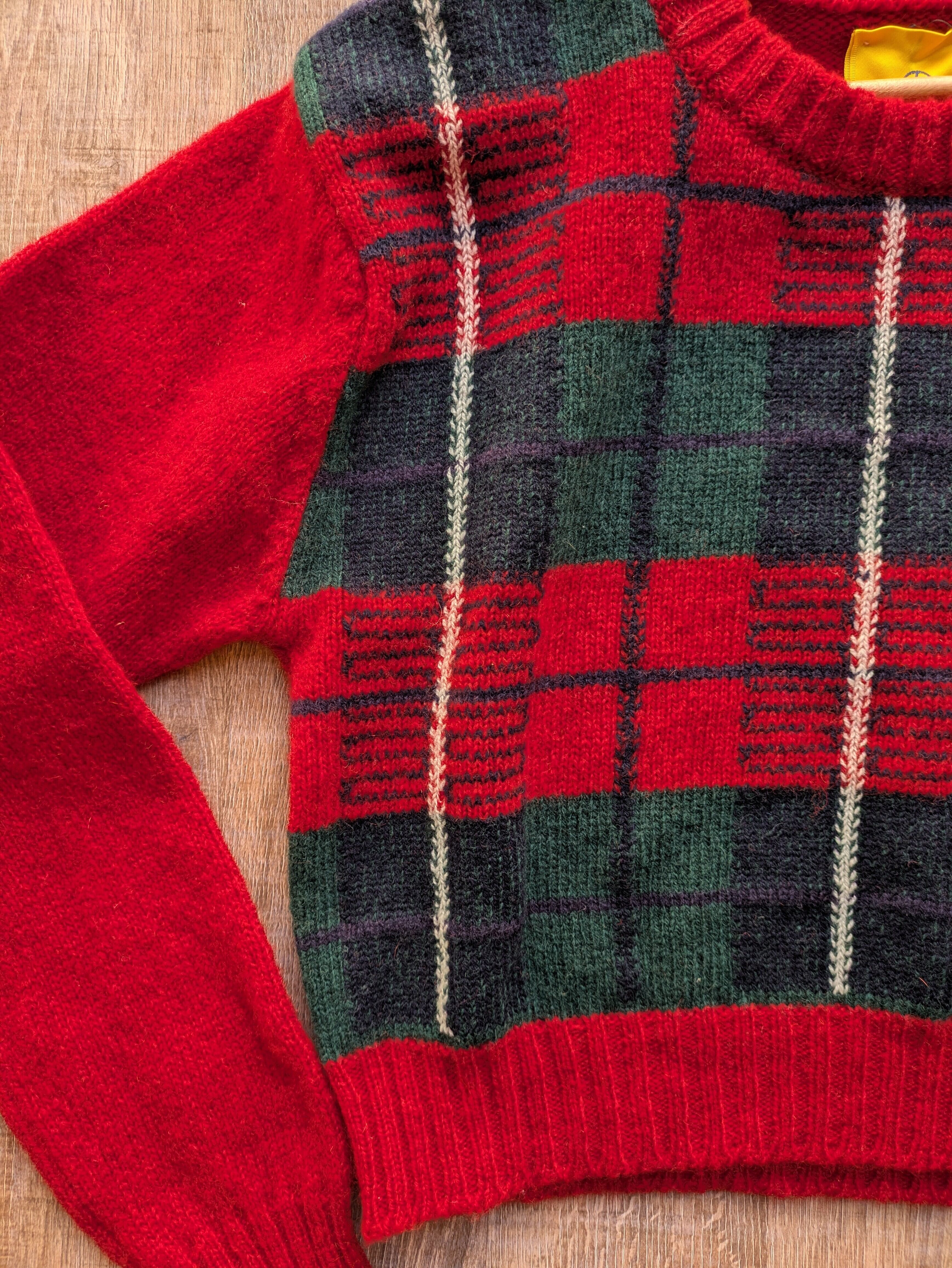 ショート丈のチェック柄ニットです。