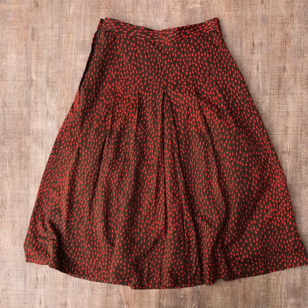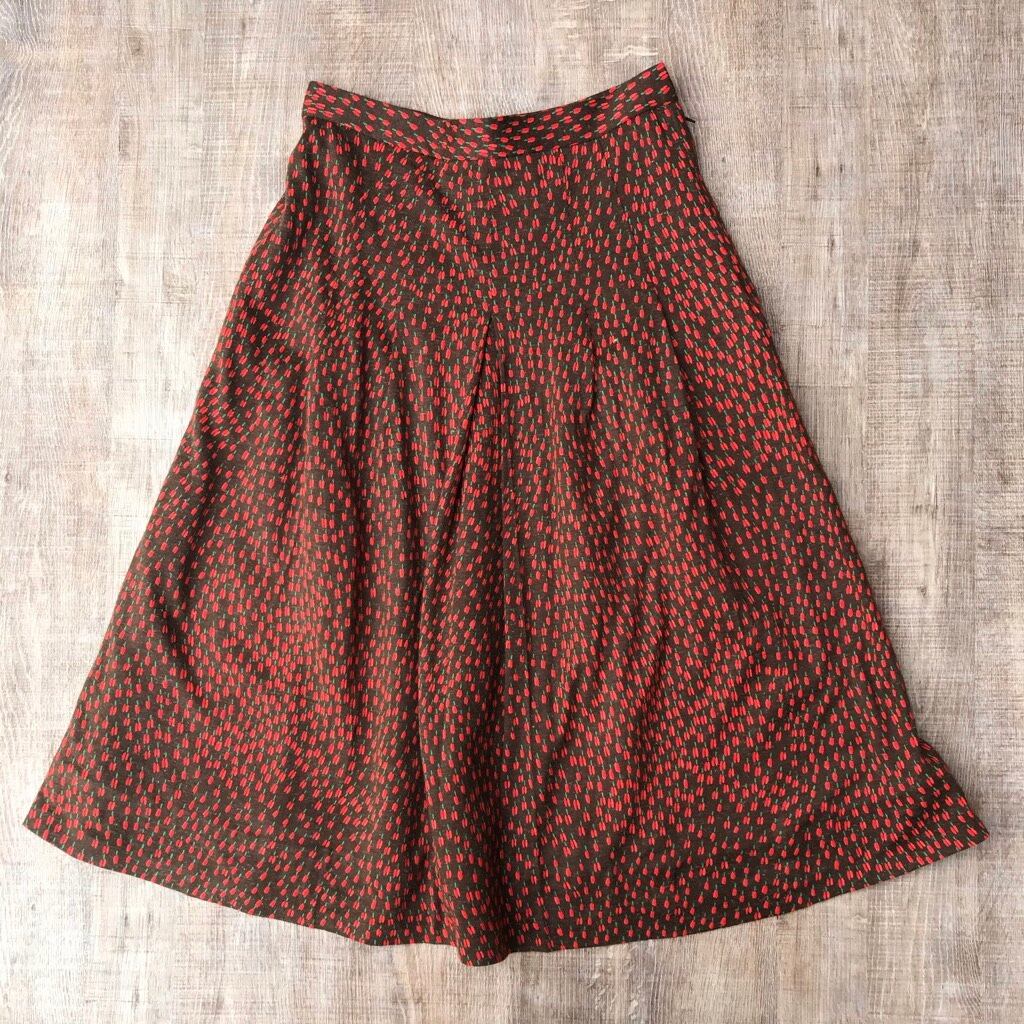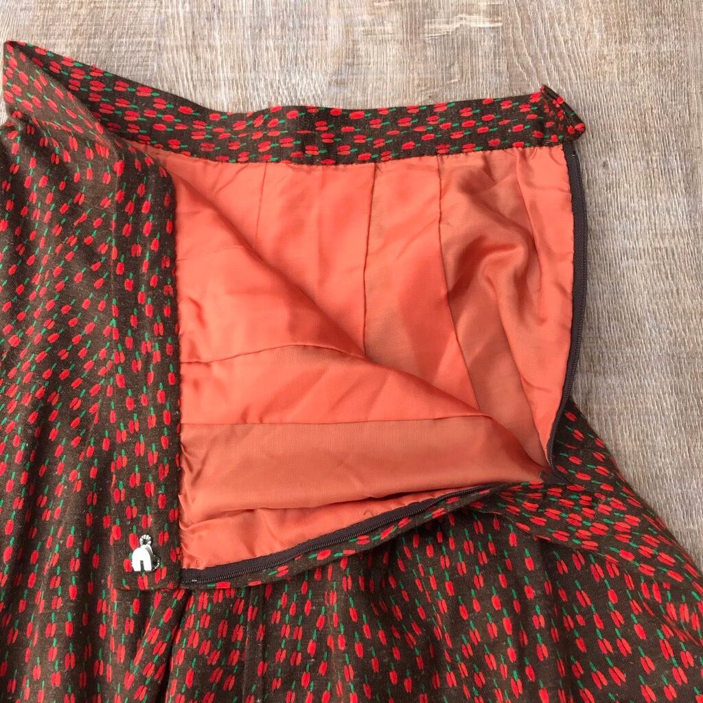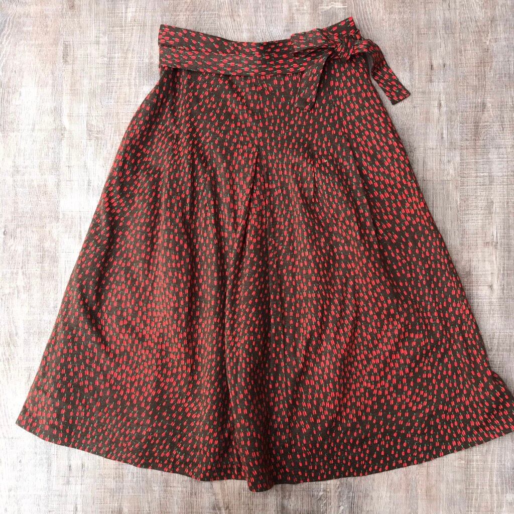 レトロな柄のフレアスカートです。同生地のリボン付きです。