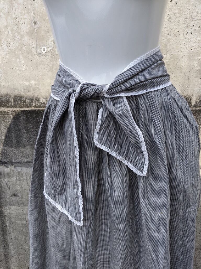 共布ベルト付きの千鳥柄のフレアスカートです。