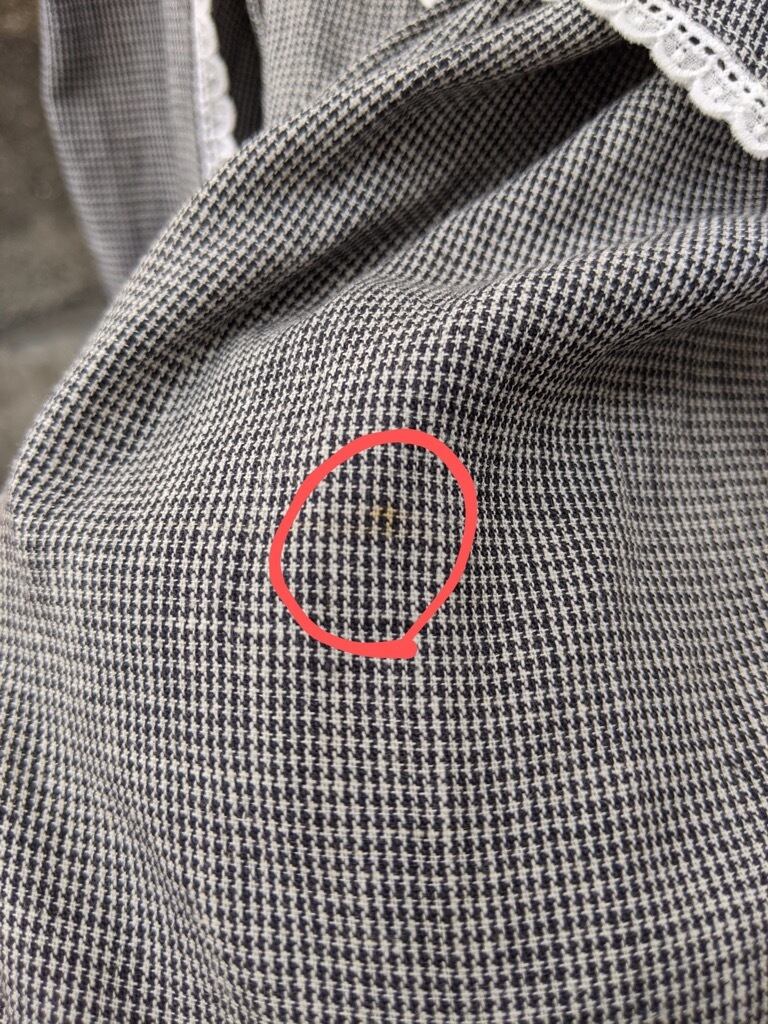左腿のあたりに小さなシミがあります。目立つものでは無いと思いますが、お写真をご確認の上ご検討ください。