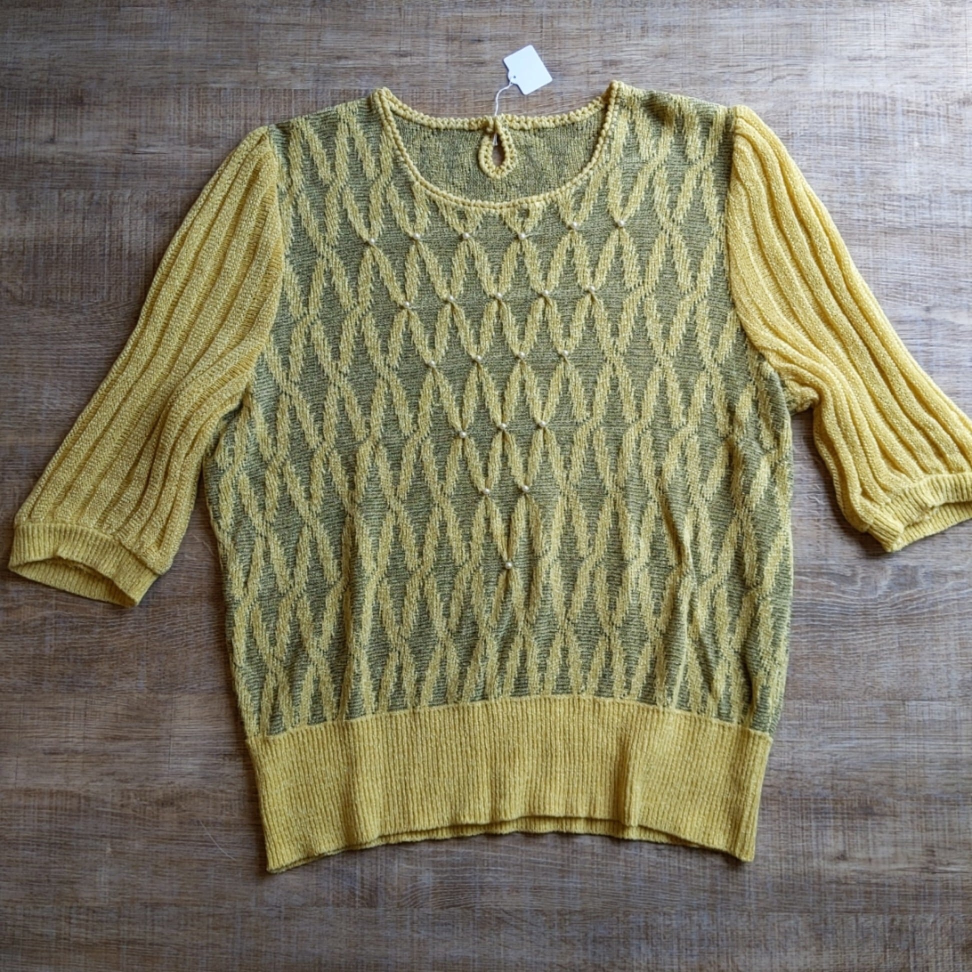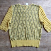 パール風のビーズが可愛いサマーニット です。袖ながめで二の腕もしっかりカバーできます