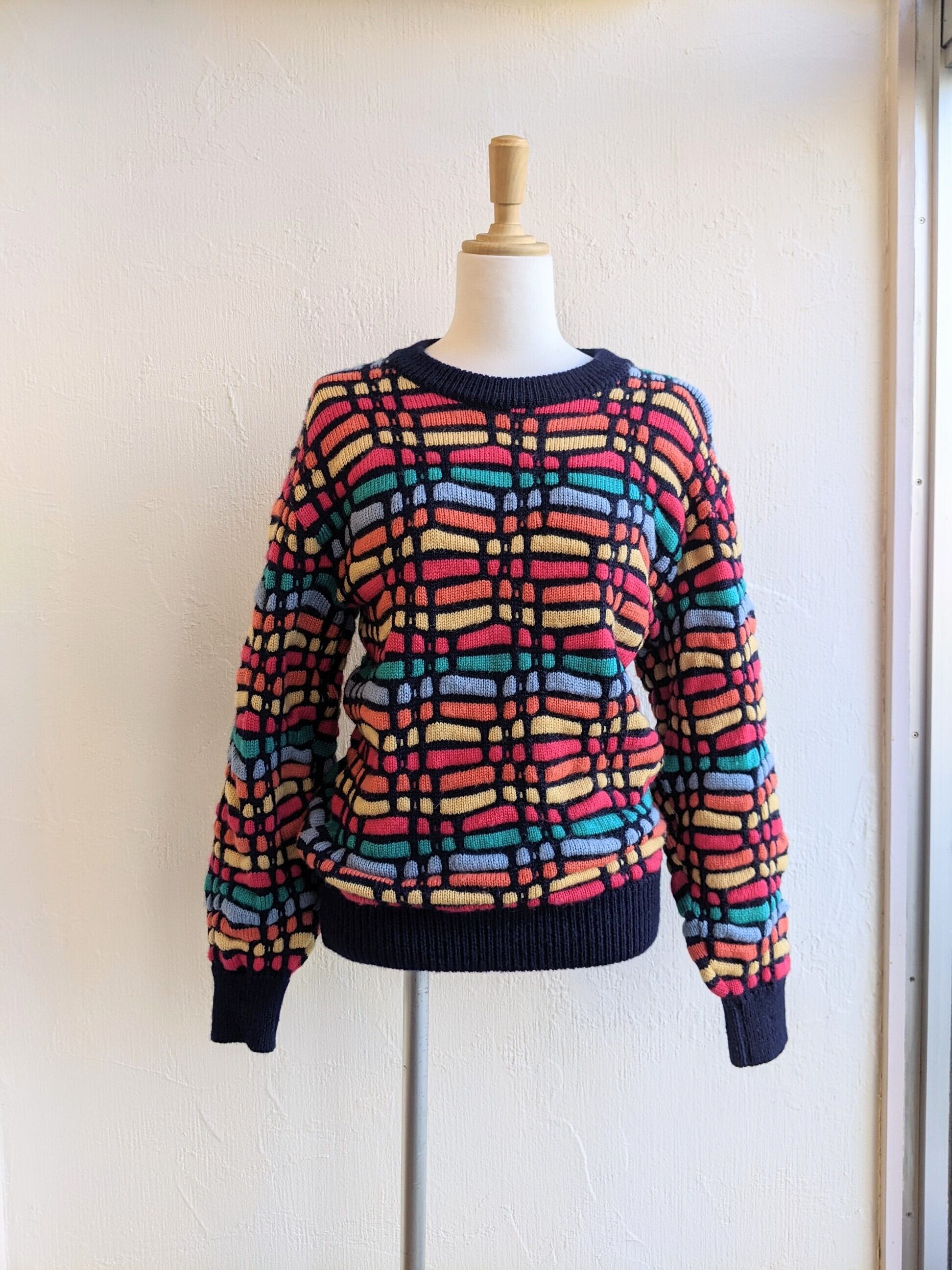 カラフルな80年代っぽいニットです。