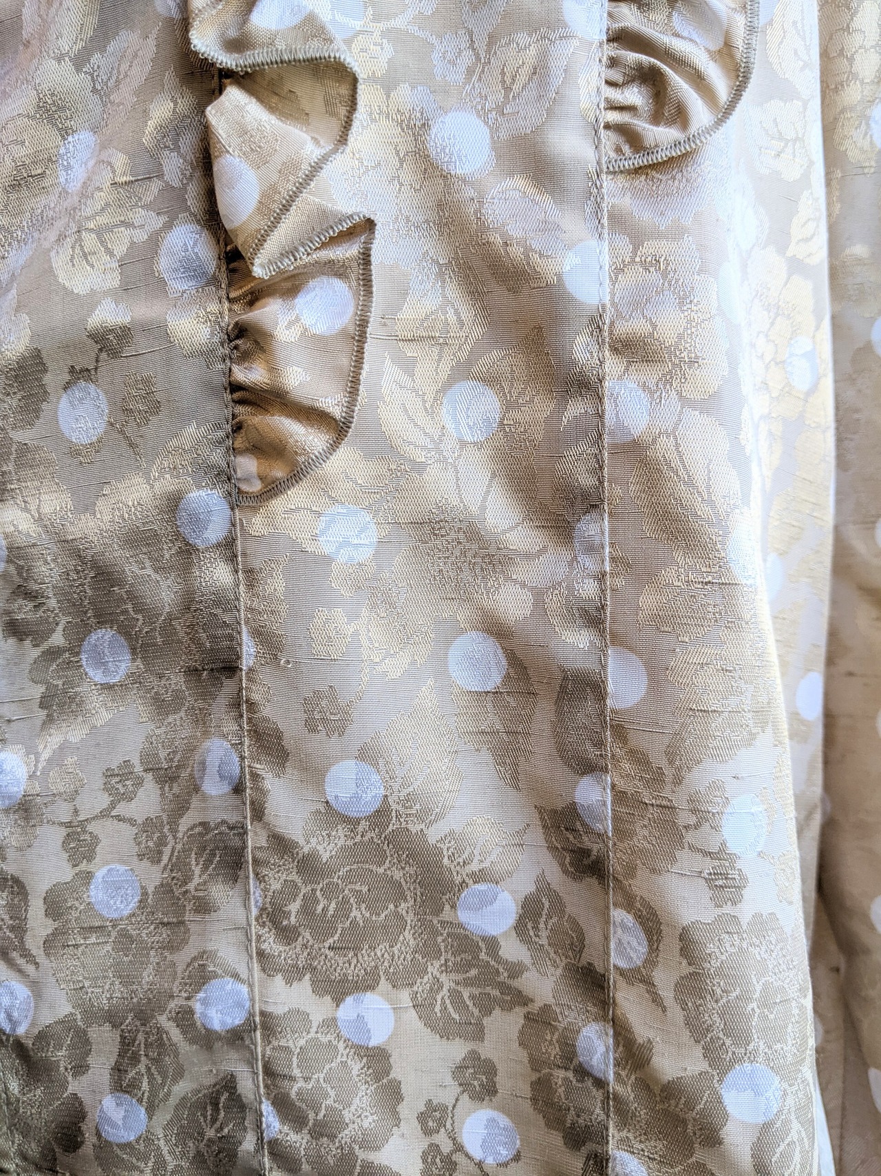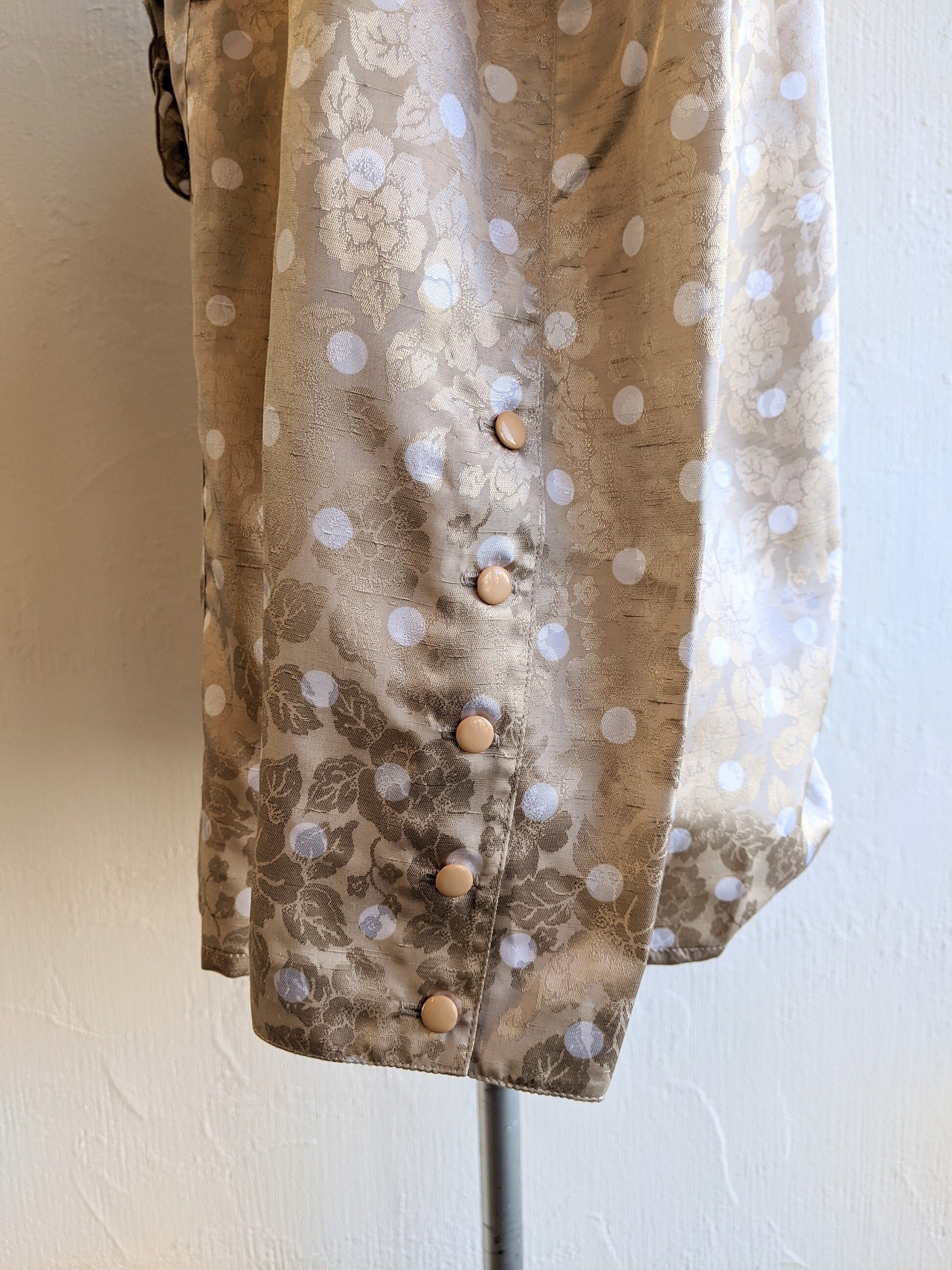 光の当たり具合でお花が見えるドット柄の面白い生地です。