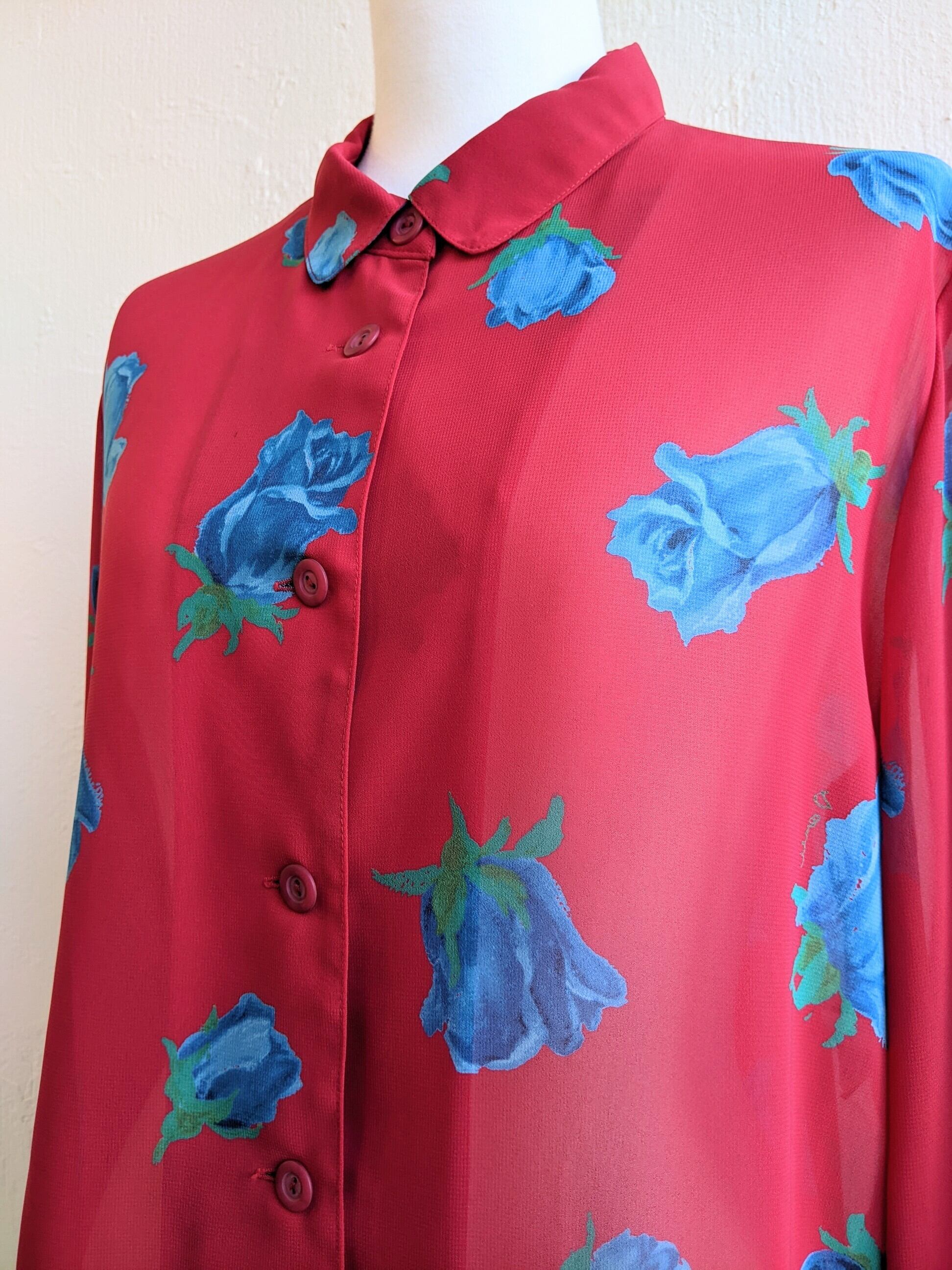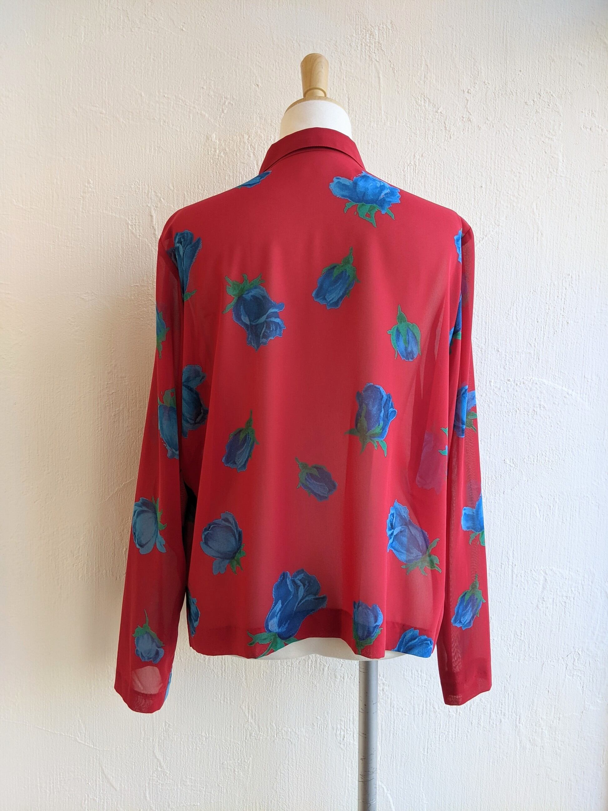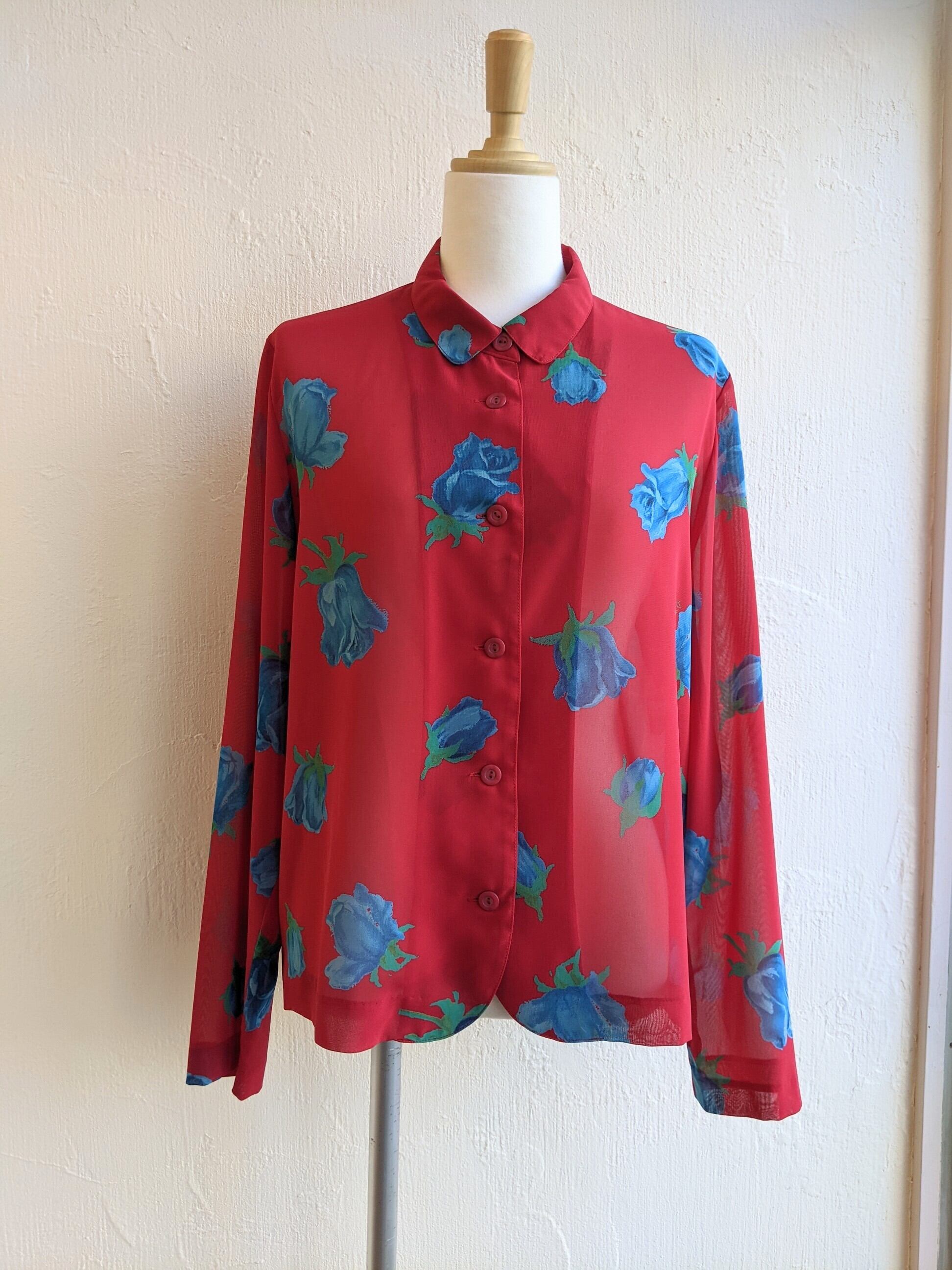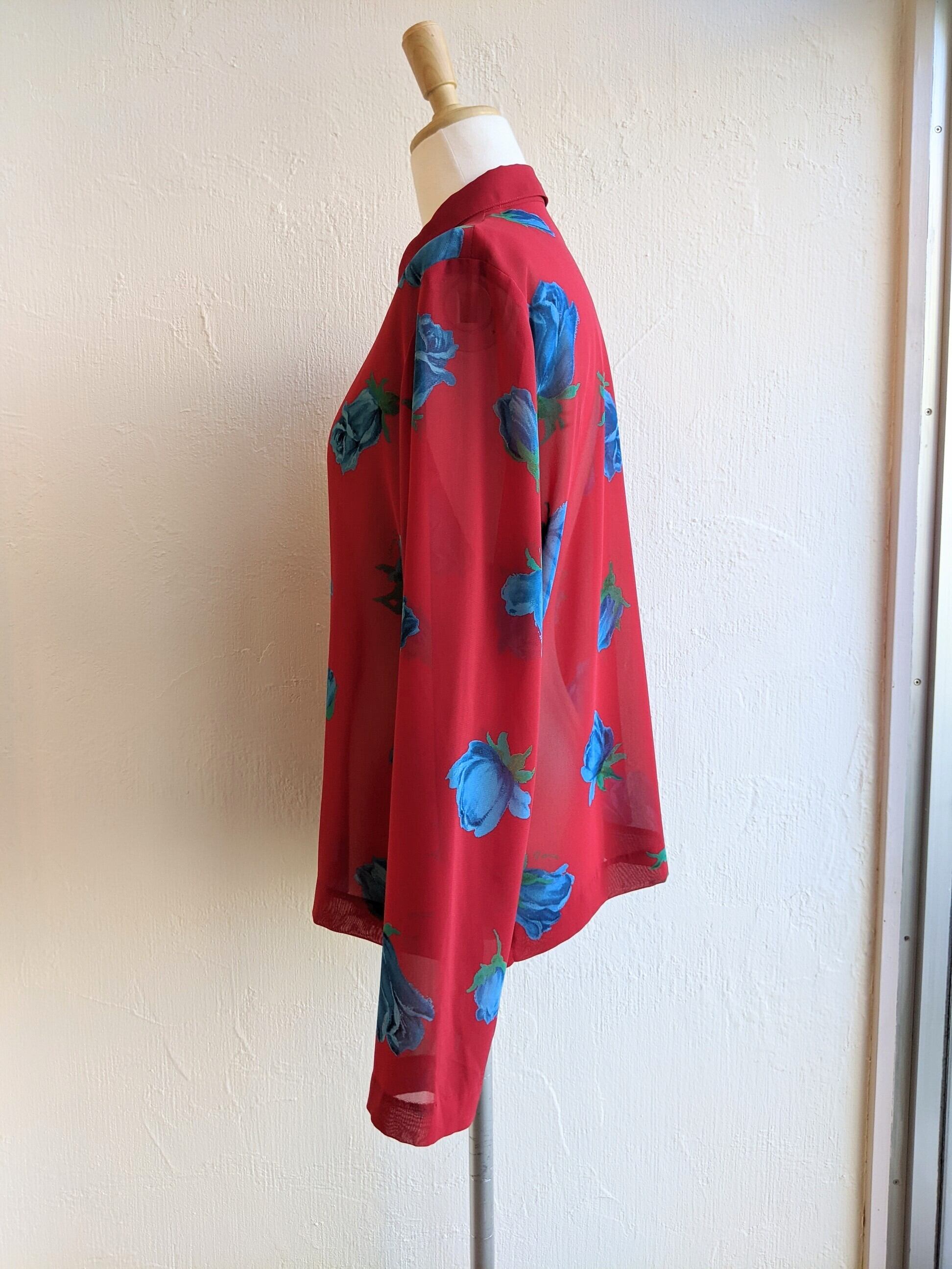 青い薔薇柄の派手派手ブラウスです